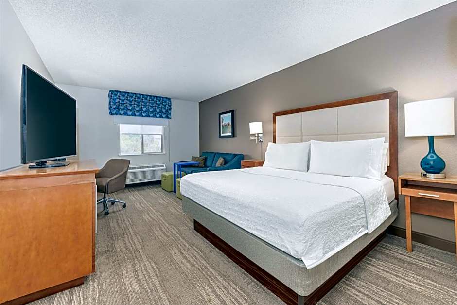 This mobility accessible, nonsmoking room features one king sized bed, and an accessible bath tub. The room features free WiFi, microwave, refrigerator, a HDTV, and an alarm clock/radio.